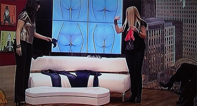 Dok se obrve iscrtavaju i apeluje na žene da povedu računa o tom kosmatom delu tela, bavimo se novom temom – ženskim gaćicama. Za tu urnebesnu modnu rubriku zadužena je izvesna kreatorka, stalna gošća. Ona je iznela najpre grubu podelu ženskih guza na „manje poželjne i više poželjne“, premda je podela na „imati guzu i nemati je“ najveća, (stvarno, emancipacija nas ubi), a potom i na „kockaste, srcaste, okrugle i V“.