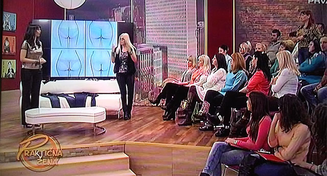 Voditeljki je malo teže išlo s ovim podelama, pa je zatražila da joj se praktično objasni kakvu guzu ona ima. Gošća ju je usrećila, rekla da je idealna, da može sve da nosi, na šta je voditeljka uskliknula: „Na radost muža moga!“ Naravno, pa na čiju radost bi bilo?! A i bilo je vreme da se prisetimo te muške figure zbog koje se sve to „trpi i mora“, nije pomenuta već sedam minuta.