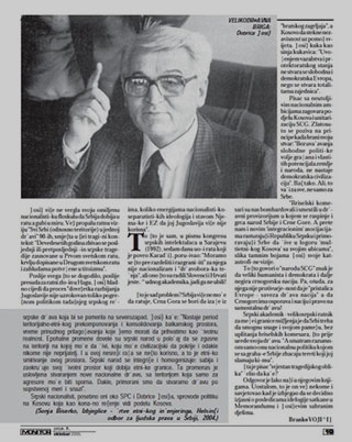 (Branko Vojičić, Monitor, 7. oktobar 2005)