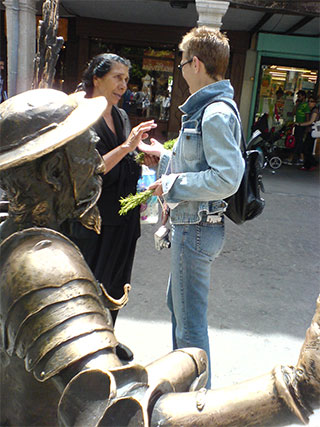 Govorili su o mističnosti. Dionisije Areopagita piše raspravu O mističnoj teologiji. Dionsije Areopagita, naravno, nije prvi mističar, za njega bih mogla reći da je prvi teoretičar hrišćanske mistike. A o hrišćanskim mističarima je u mojoj knjizi Prstom anđela po snegu reč. Danas se iskustva svetog nalaze na drugim mestima. Mislim da je to o čemu govorite najduhovitije naslikao – usnimio – Andrej Tarkovski. Ako se setite scene iz Nostalgije u kojoj Erland Jozefson, poliven benzinom, propoveda na italijanskom trgu o pokajanju i skorom smaku sveta, a neki mangup mu iza ćoška daje znak rukom da već jednom kresne taj upaljač koji drži u ruci, onda vam je to dovoljno jasna slika…