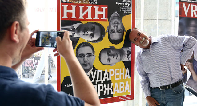Povodom izložbe oglasio se i Damir Kalember, koji se u Beogradu decenijama unazad lažno predstavlja kao Filip Švarm, odgovorni urednik Miškovićevog nedeljnika Vreme. Čovek koji je, ničim izazvan, cenzurisao čak i sopstveno ime, zaključio je da je „za Danas i Vreme ova izložba reklama“.