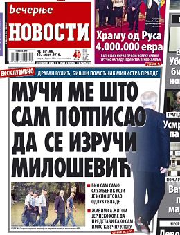 Na istoj frekvenciji i rame uz rame sa Politikom, u odbranu Miloševićevog prava da nikada ne odgovara za zločine do kojih je njegova politika dovela, našle su se i, za šovinističke ispade uvek spremne, “Večernje novosti” pod upravom Ratka Dmitrovića istaknutog predstavnika ratnohuškačkog novinarstva iz devedesetih godina. Dalje razrađujući unapred zadatu temu, “Novosti” su objavile tekst pod naslovom: “Dragan Vulić: Muči me godinama što sam pomogao Slobino izručenje”, u kojem se prenosi navodno pokajničko priznanje penzionera Vulića koji 15 godina kasnije tvrdi da je, kao bivši pomoćnik ministra pravde, samo bio službenik koji je ispoštovao odluku vlade. “Živim sa žigom jer neko hoće da predstavi kako sam imao ključnu ulogu”, zavapio je Vulić ne otkrivajući kako je posle punih 15 godina ušuškane anonimnosti, njegov slučaj baš sada ugledao svetlost dana. Vulić, međutim, nije pojasnio ni sa kakvim to žigom živi u poslednjih 15 godina, osim ako u njegovoj moralno-mentalnom poretku privođenje zločinaca predstavlja veći zločin od razloga zbog kojih se privode.
