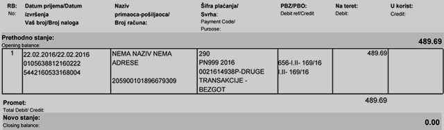 12:43: Pita nas Andrej Nikolić kakvo nam je stanje računa u domicilnoj Reiffeisen banci? Izvolite pogledati, nepromenjeno. Svega: 0,00 dinara.